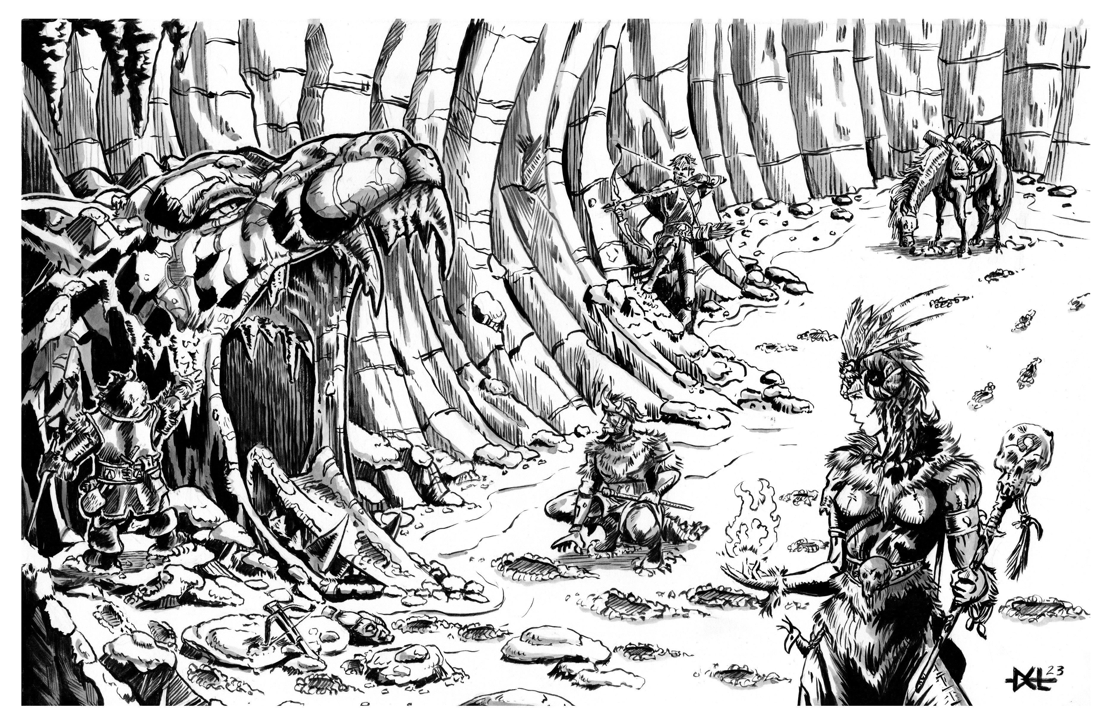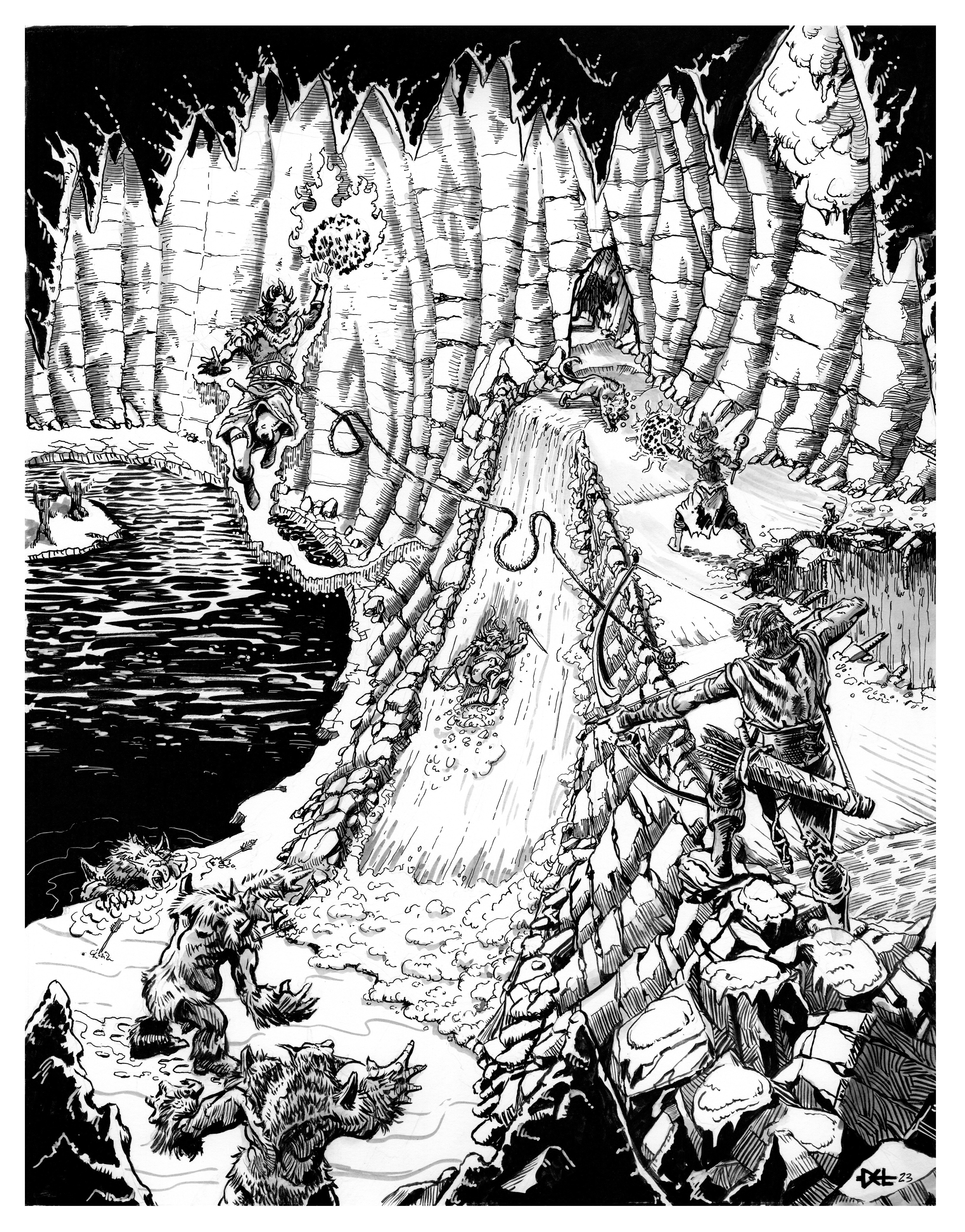 *Sigh*…isn’t true human art fantastic?! All of this art shown here was done by Del Teigeler. The dude is amazing to work with, a real POWER-HOUSE! and really captures the vibe of old-school Dungeons & Dragons–can’t speak highly enough about him. It’s the correct path to take for illustrating old-school adventures as only human artists can capture the ‘vibe’.