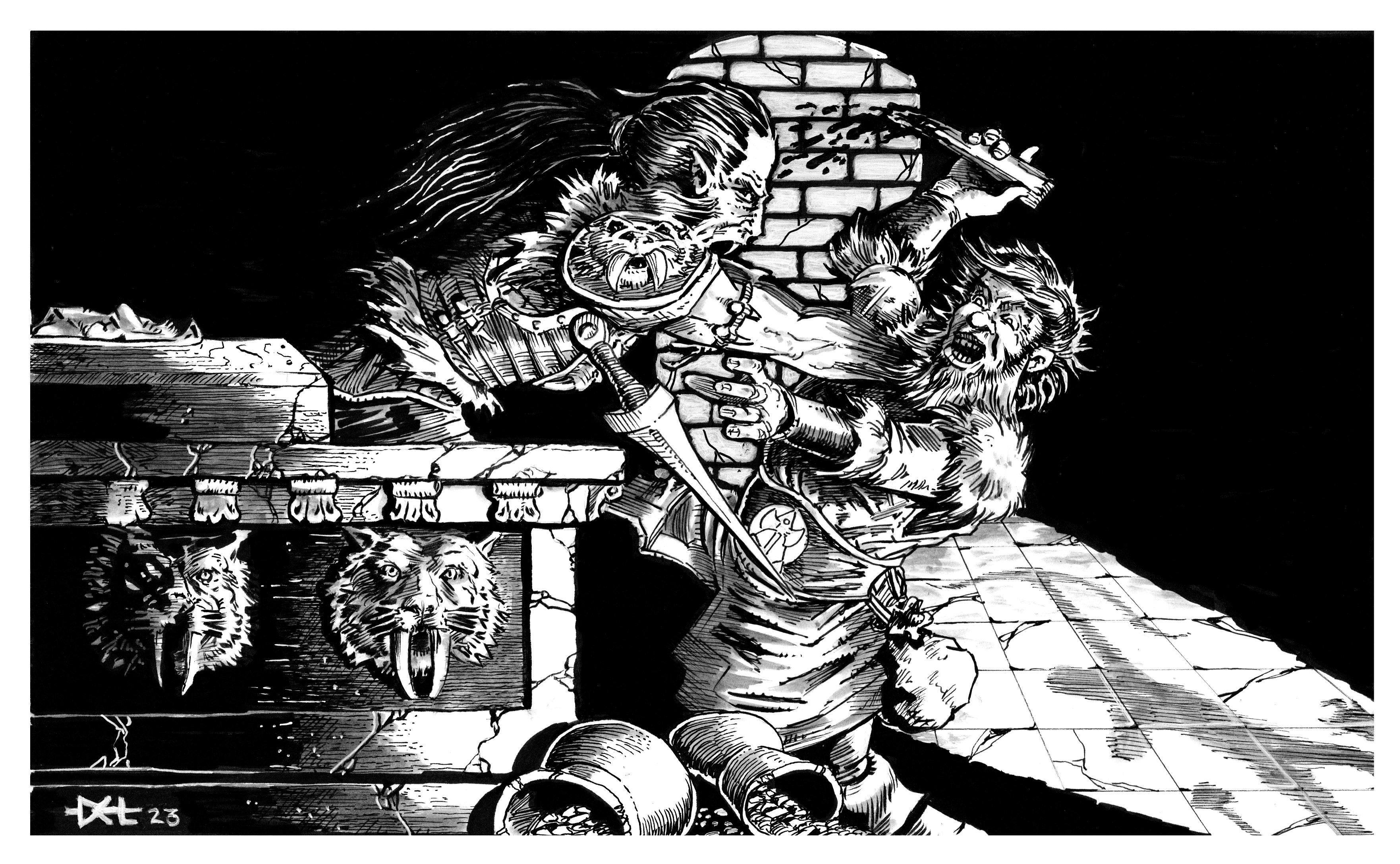 *Sigh*…isn’t true human art fantastic?! All of this art shown here was done by Del Teigeler. The dude is amazing to work with, a real POWER-HOUSE! and really captures the vibe of old-school Dungeons & Dragons–can’t speak highly enough about him. It’s the correct path to take for illustrating old-school adventures as only human artists can capture the ‘vibe’.