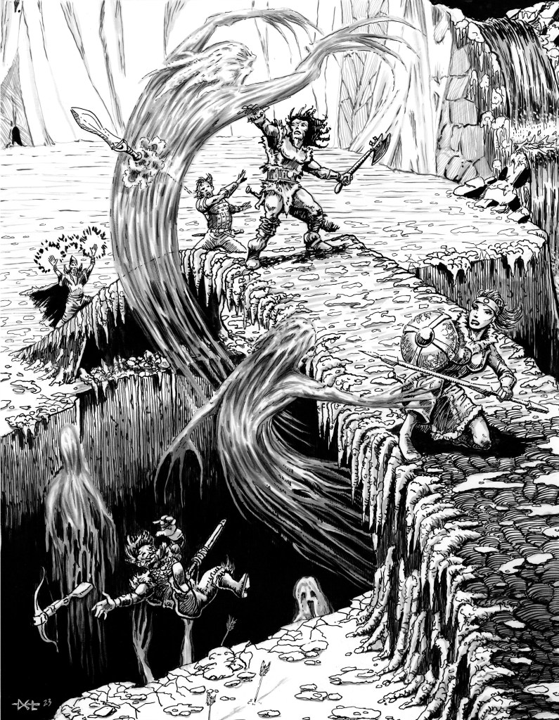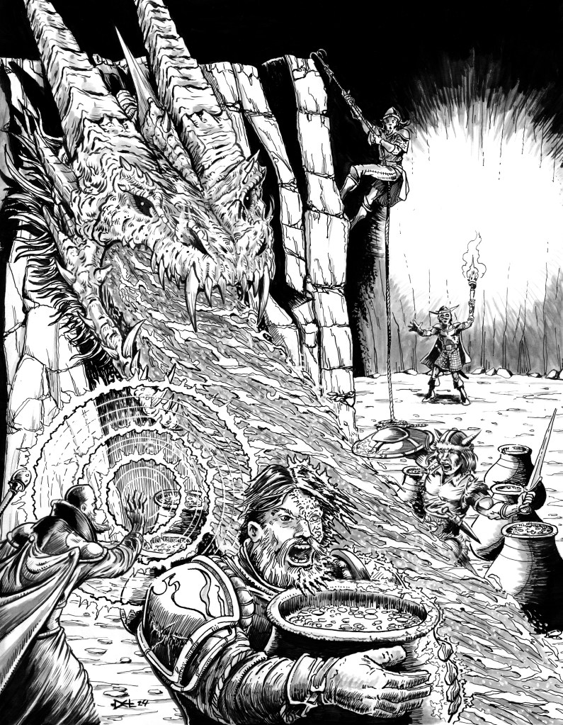 *Sigh*…isn’t true human art fantastic?! All of this art shown here was done by Del Teigeler. The dude is amazing to work with, a real POWER-HOUSE! and really captures the vibe of old-school Dungeons & Dragons–can’t speak highly enough about him. It’s the correct path to take for illustrating old-school adventures as only human artists can capture the ‘vibe’.