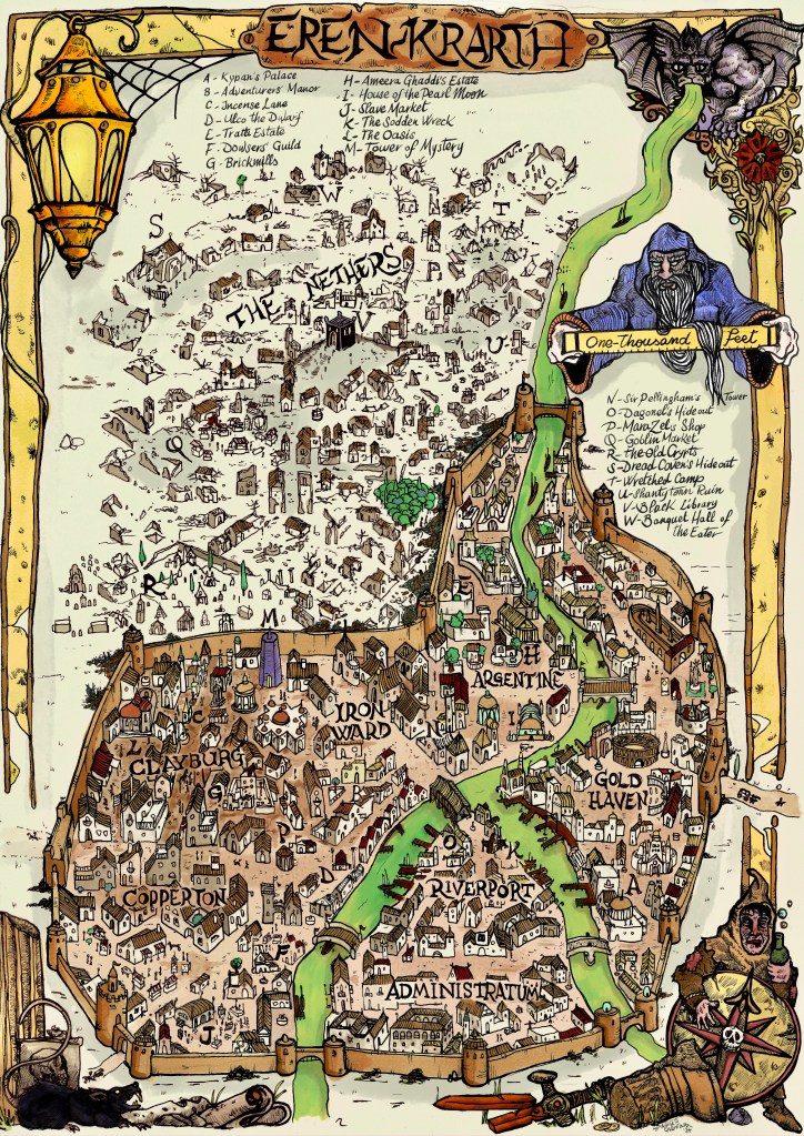 Ray’s adventure–Death-Maze of the Sorcerer Kings (previously called Beware! The Cult of the Cannibal King!) was in a No Artpunk book, but he has expanded it 3-4x—instead of a just a dungeon that was found in No Art Punk, he has created a huge city adventure for high levels for OSE. Guys—I think this one is really good! Has a great city map that we will make a limited run of posters for. He found a few great artists too (that I’m hoping to hire at some point). He’s been working/playtesting at it for awhile and I’ve edited it twice and starting to get into layout mode for that. He is also finishing up an additional expansion for it. This one will be a Kickstarter attempt to pay for all the art–hopefully in a few months. Here is a sneak peak of the city map.