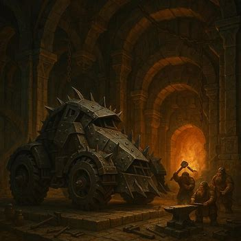 I started to collapse, darkness clouting my vision. Last I saw was Ulden attacking the ogre, defending me fiercely…perhaps he is an ok guy….and then I saw….the most magnificent forge!! A war machine was there half-built. I was so excited to work on it!!!